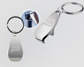 Brelok do kluczy z funkcją otwieracza, wykonany z chromowego metalu.